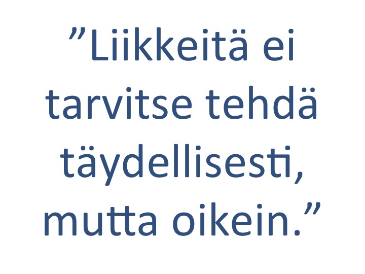 Nyrkkisääntönä voidaan myös sanoa: jos johonkin sattuu, teet liikkeen väärin.