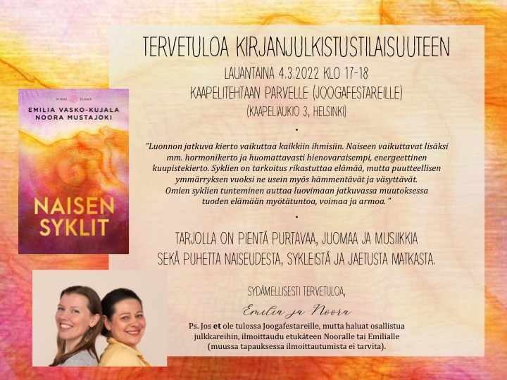 Tervetuloa Naisen syklit -kirjan julkaisujuhlaan la 4.3.23 klo 17 Kaapelitehtaalle